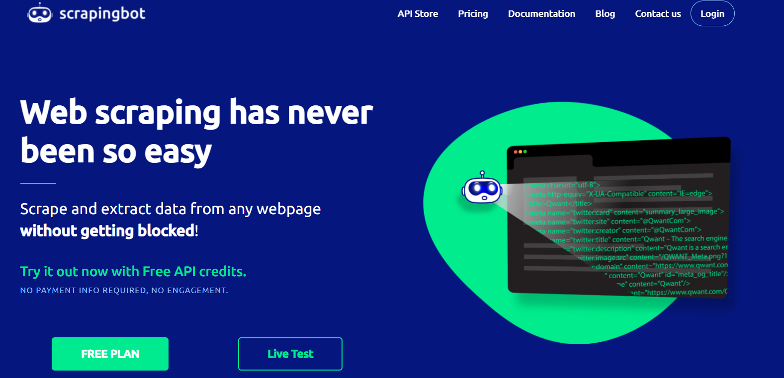 ScrapingBot is another excellent tool for developers who want to use a reliable scraping API that helps them extract precise data from any website.